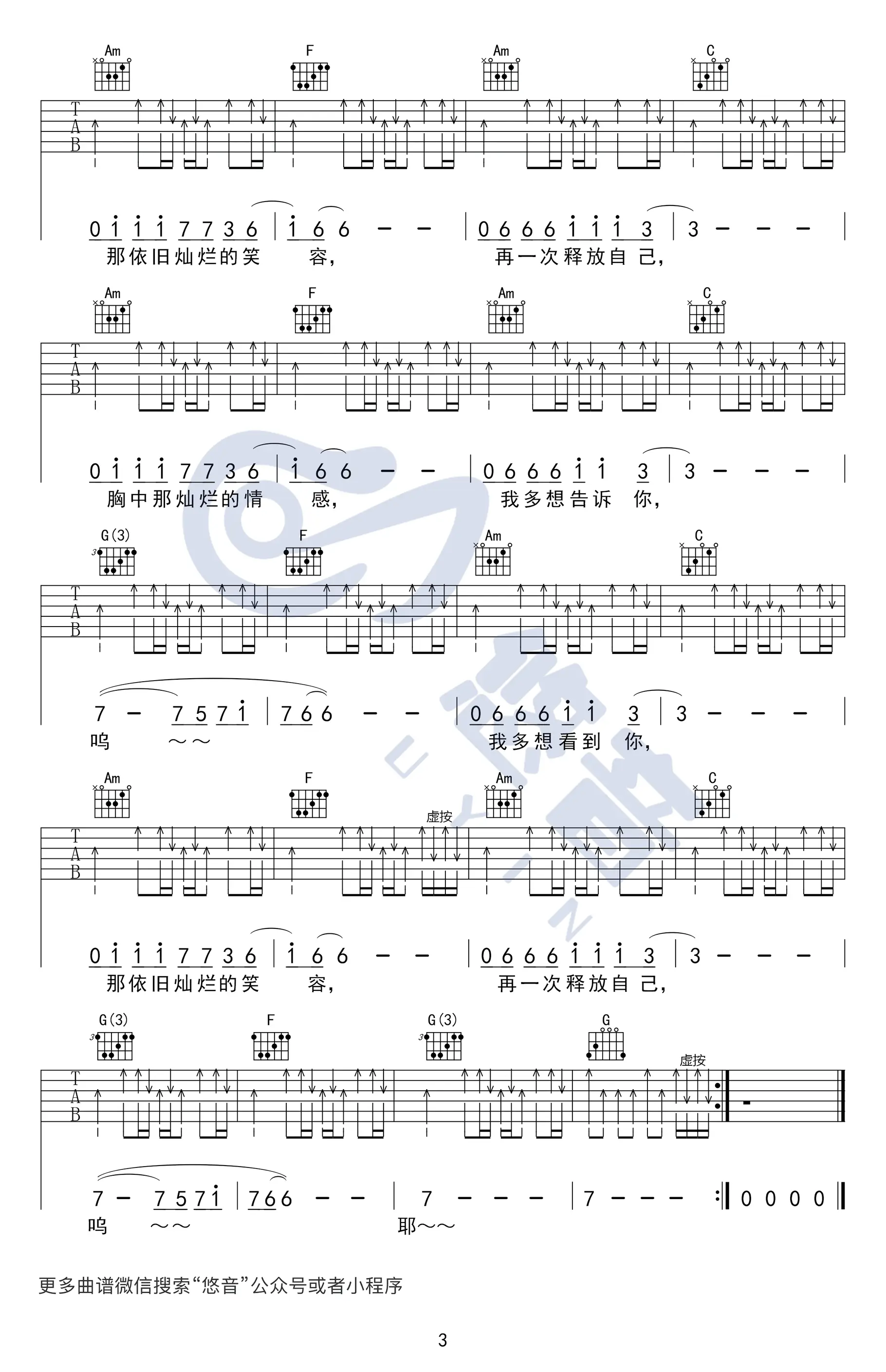 把悲伤留给自己吉他谱_陈升_G调_弹唱谱_图片谱_简单版