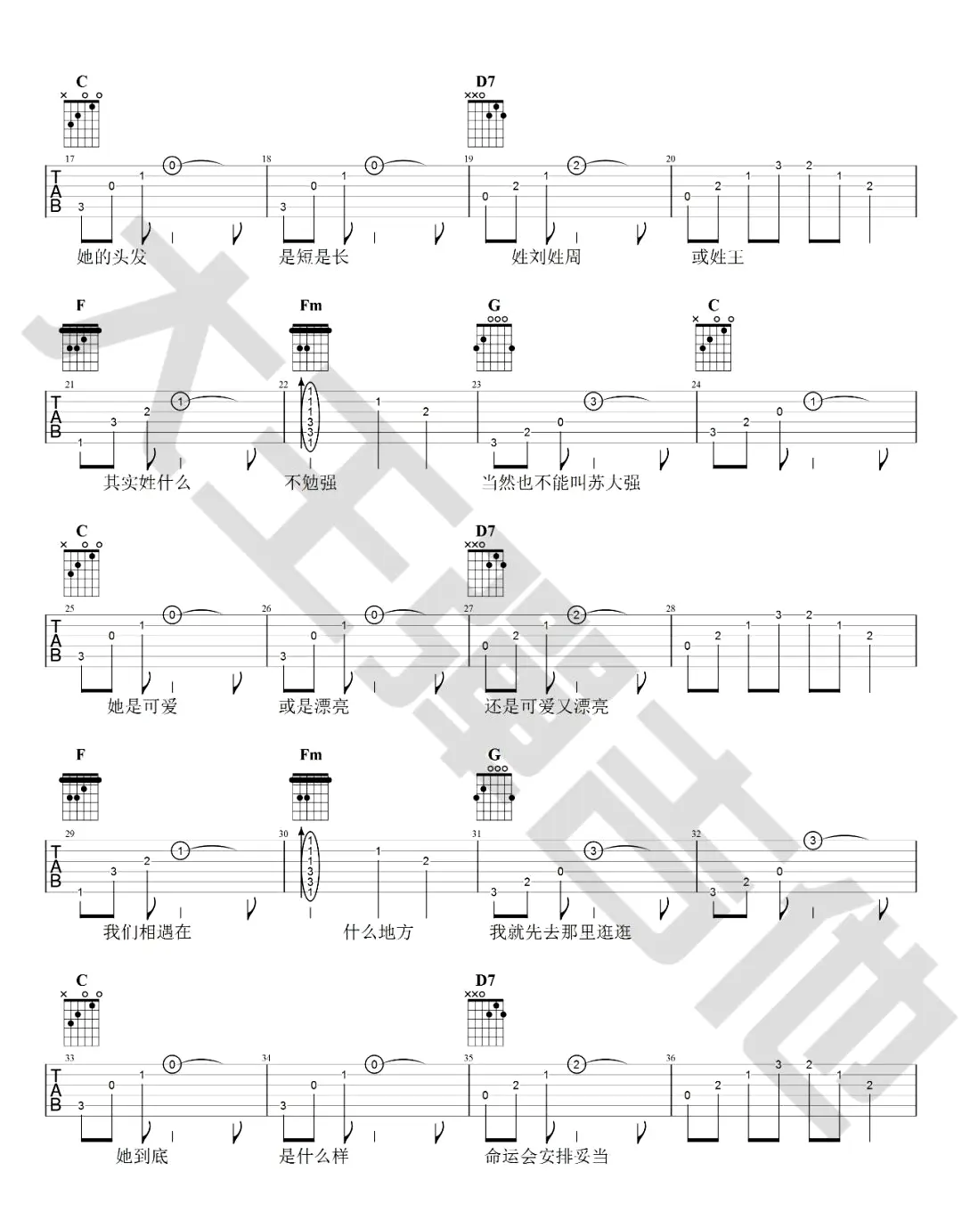 姑娘吉他谱_王源_C调弹唱谱_六线谱_图片谱