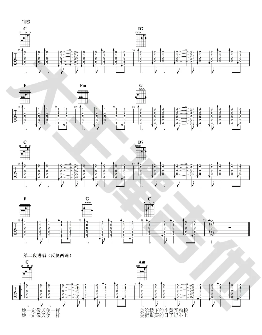 《唯一》吉他谱_抖音热歌_告五人_完整编配图片谱