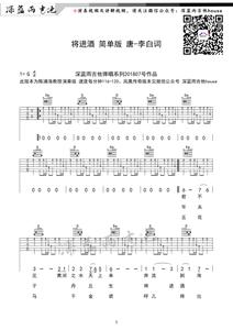 《将进酒》吉他谱,陈涌海作曲并演唱,李白作词,2011年发行,收录于专辑《将进酒》中。吉他谱选用G调指法编配,演奏难度简单,由深蓝雨吉他编配出品。