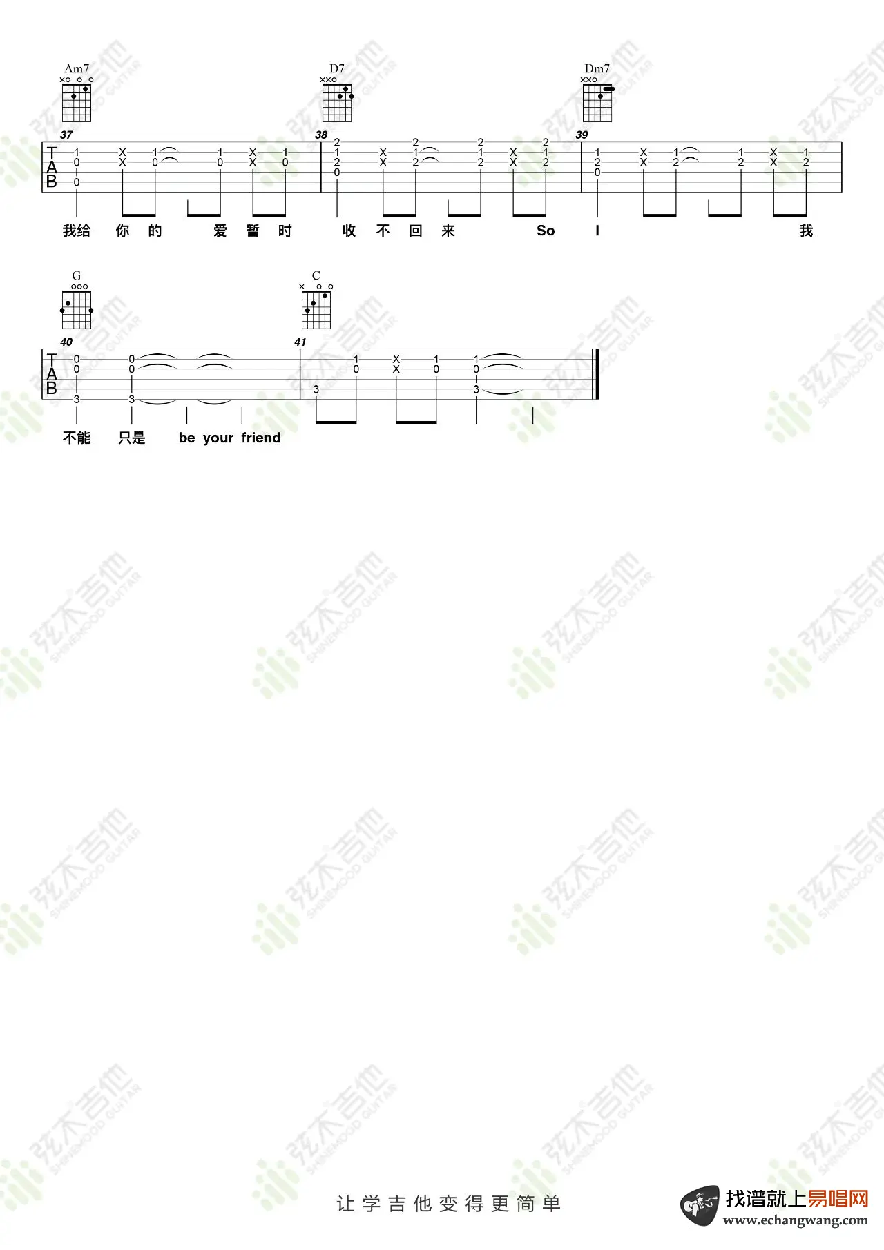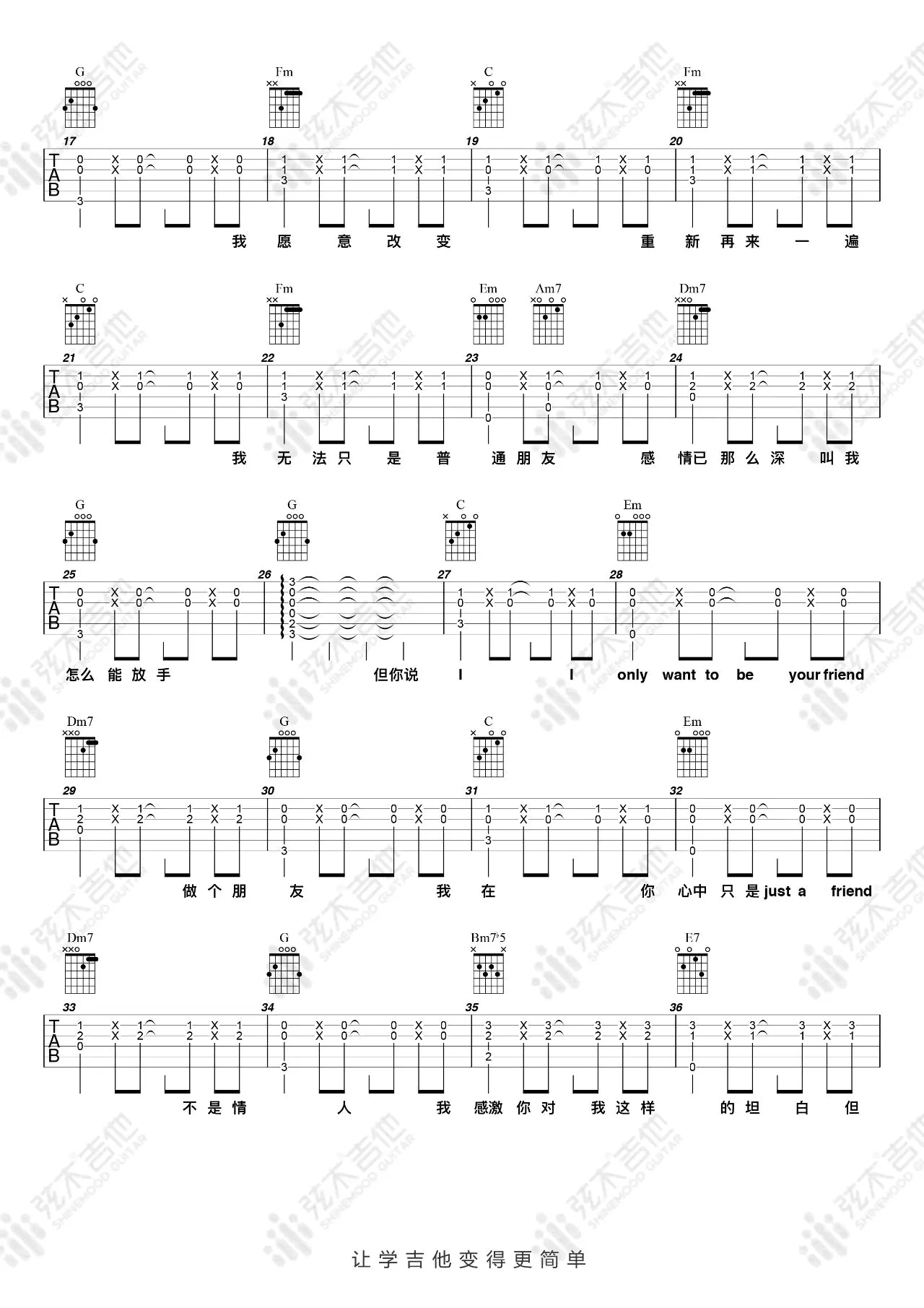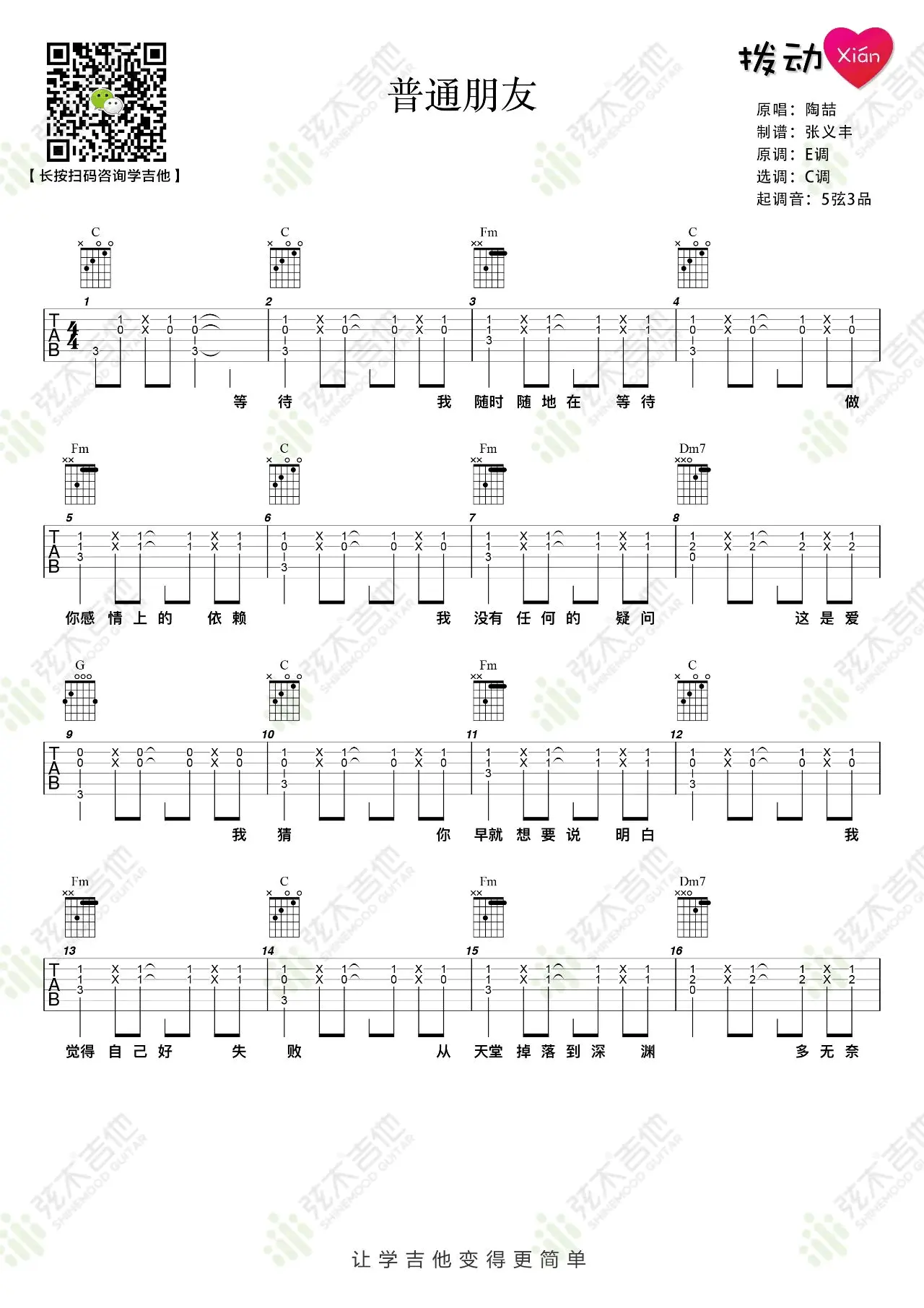 《普通朋友》吉他谱_陶喆_弹唱谱_C调_图片谱