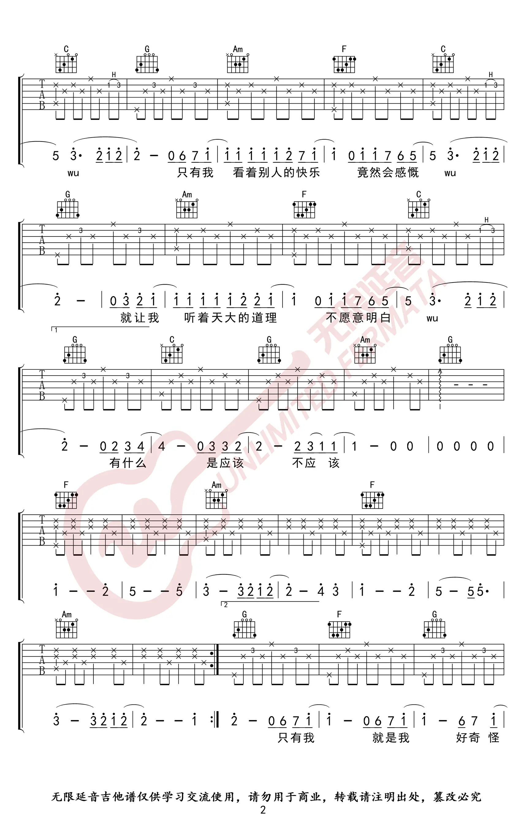 《普通朋友》吉他谱_陶喆_弹唱谱_C调_图片谱