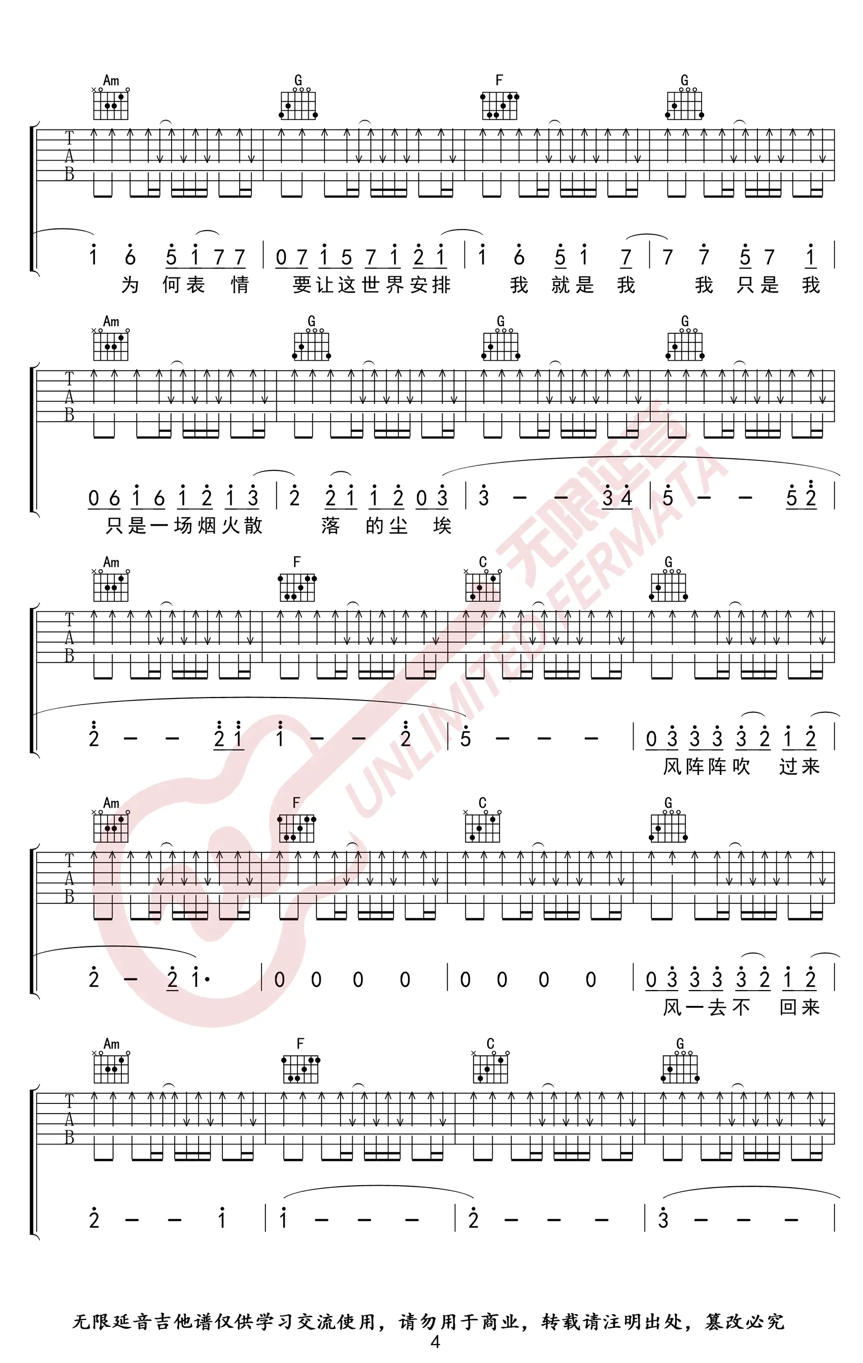 烟火里的尘埃吉他谱_华晨宇_高清六线图片谱_完整版