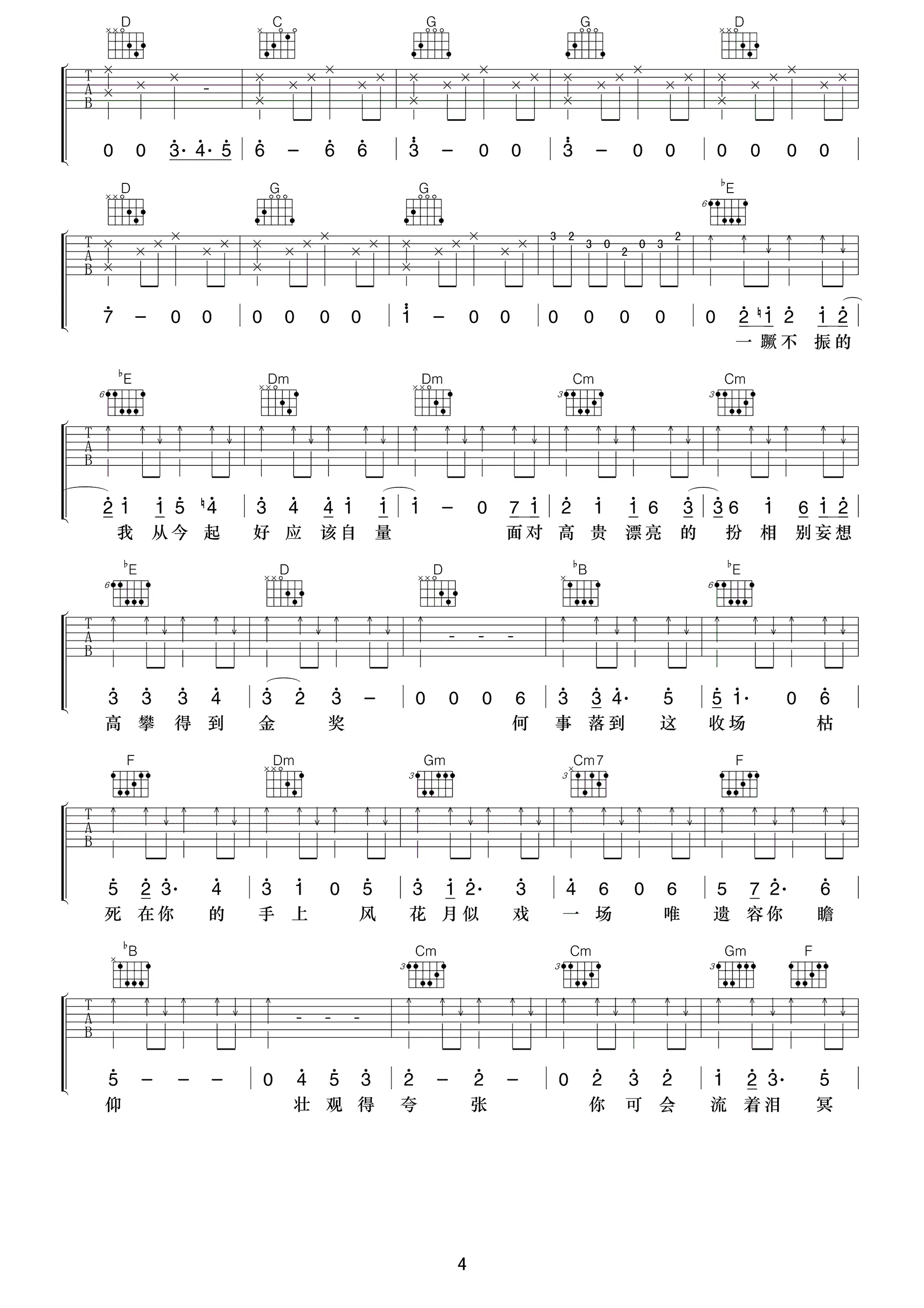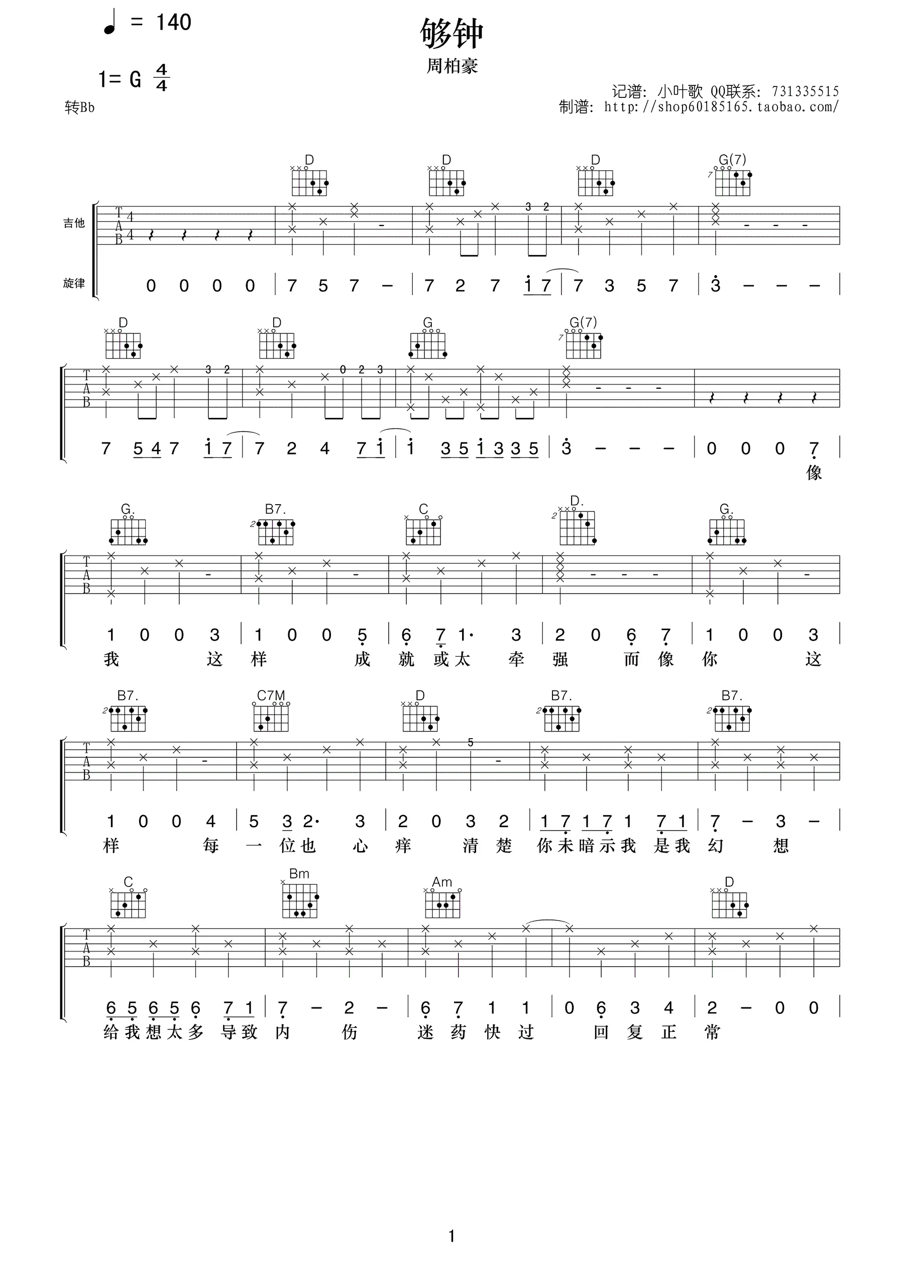 够钟吉他谱 周柏豪 G调弹唱谱 高清图片谱