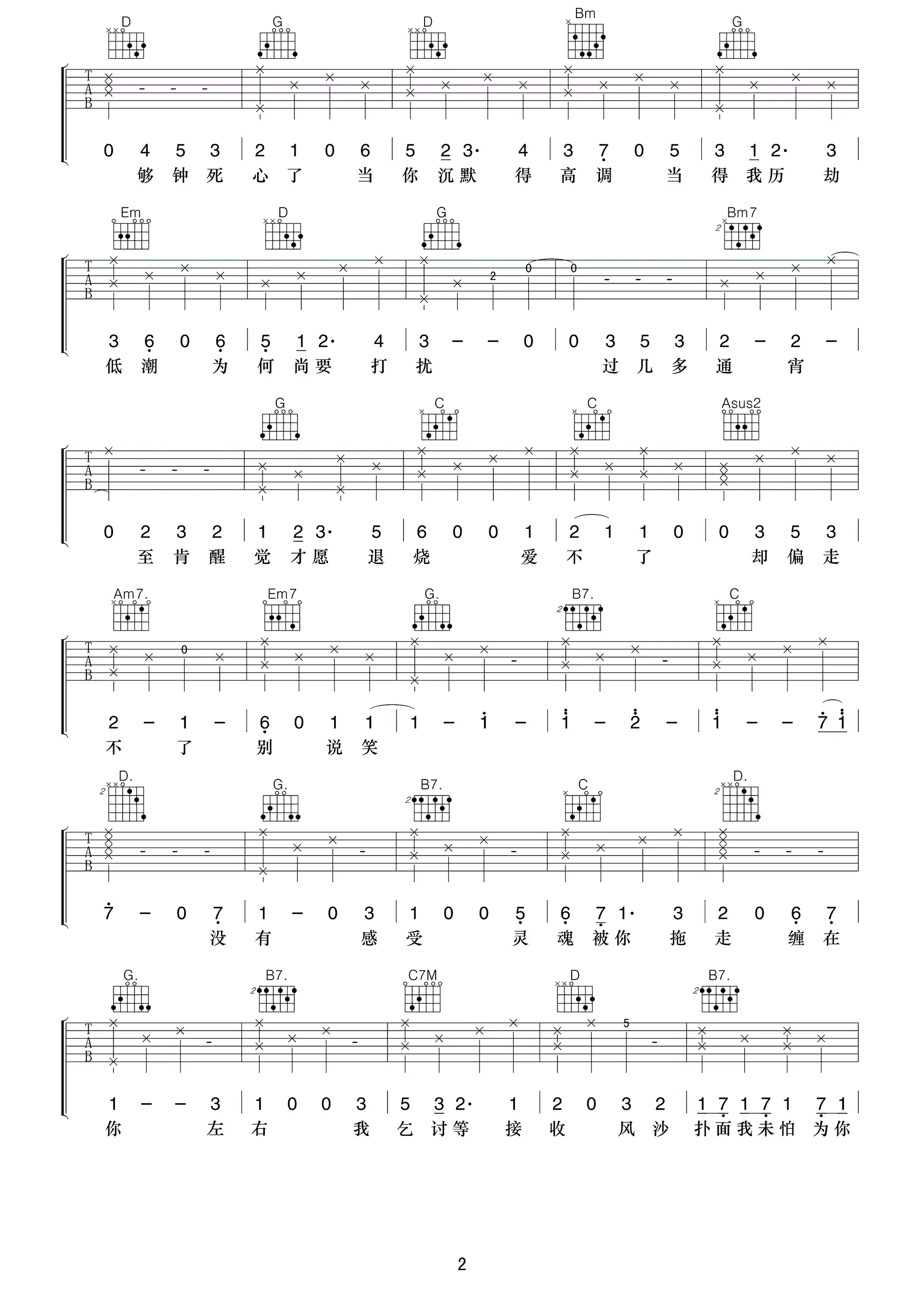 《不染》吉他谱_毛不易_香蜜沉沉烬无霜主题曲_弹唱谱_图片谱
