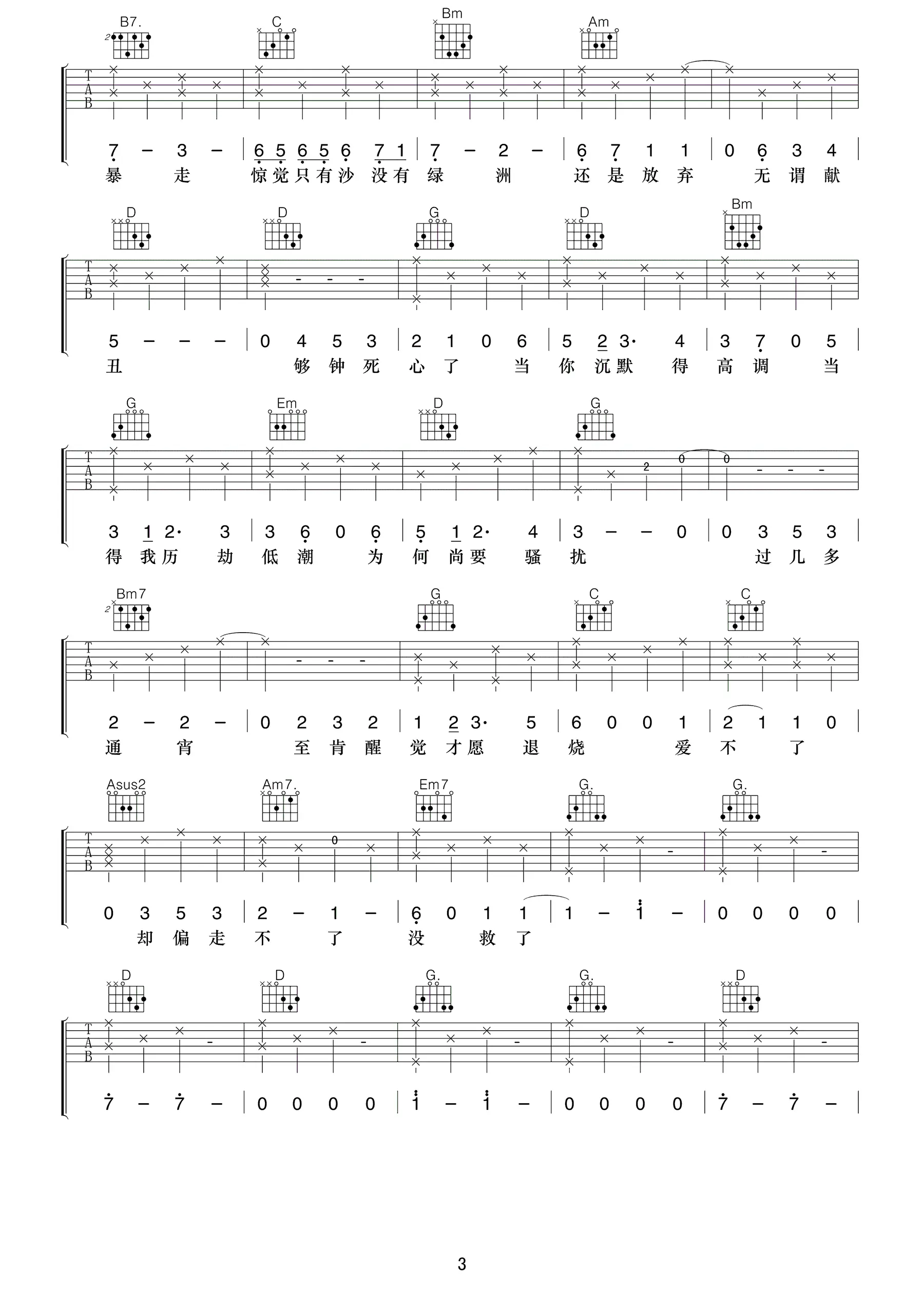 传奇吉他谱_李健_A调_高清弹唱谱_六线谱