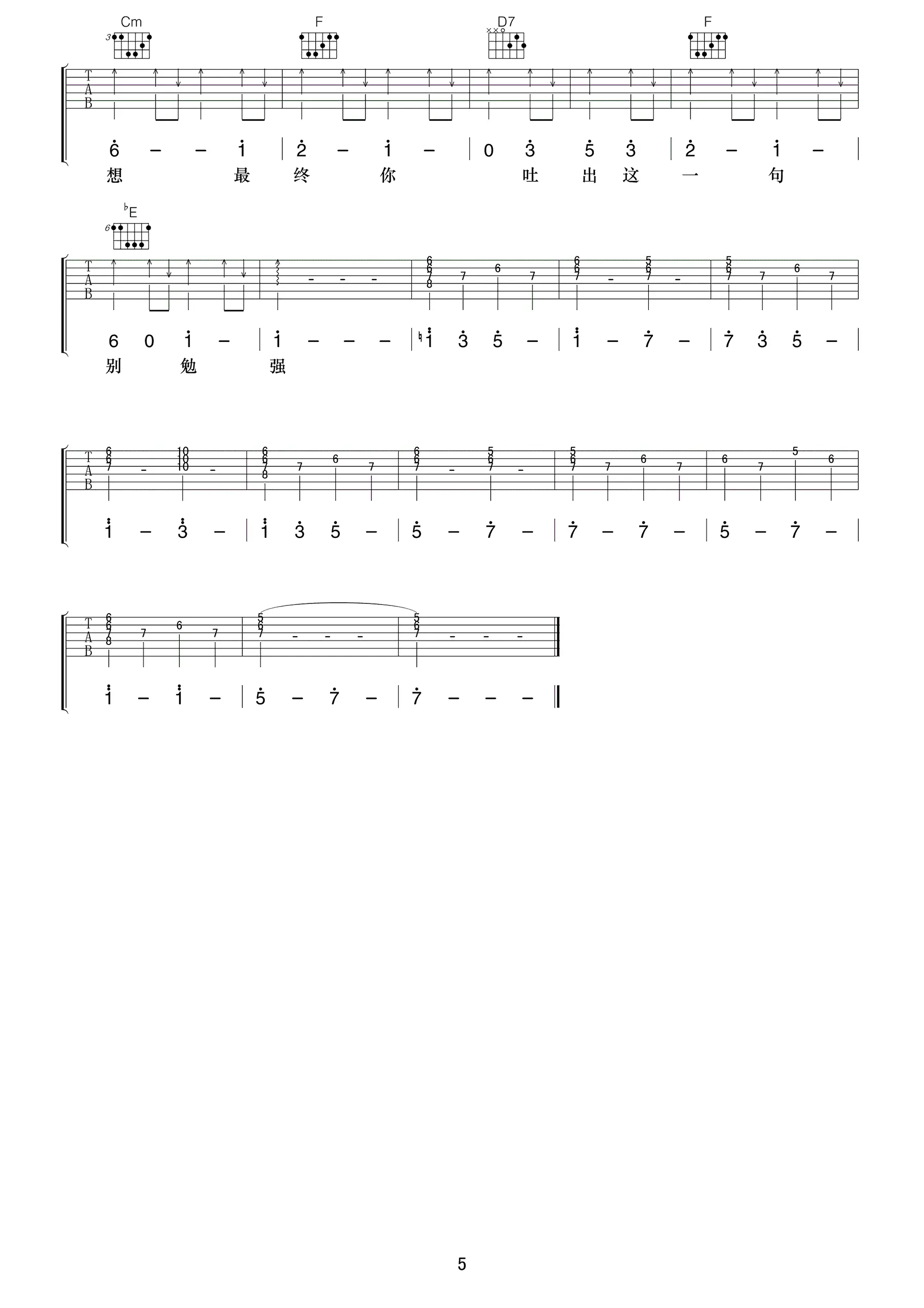 《南部小城》吉他谱_曹方/易烊千玺_弹唱谱_六线谱_高清图片谱