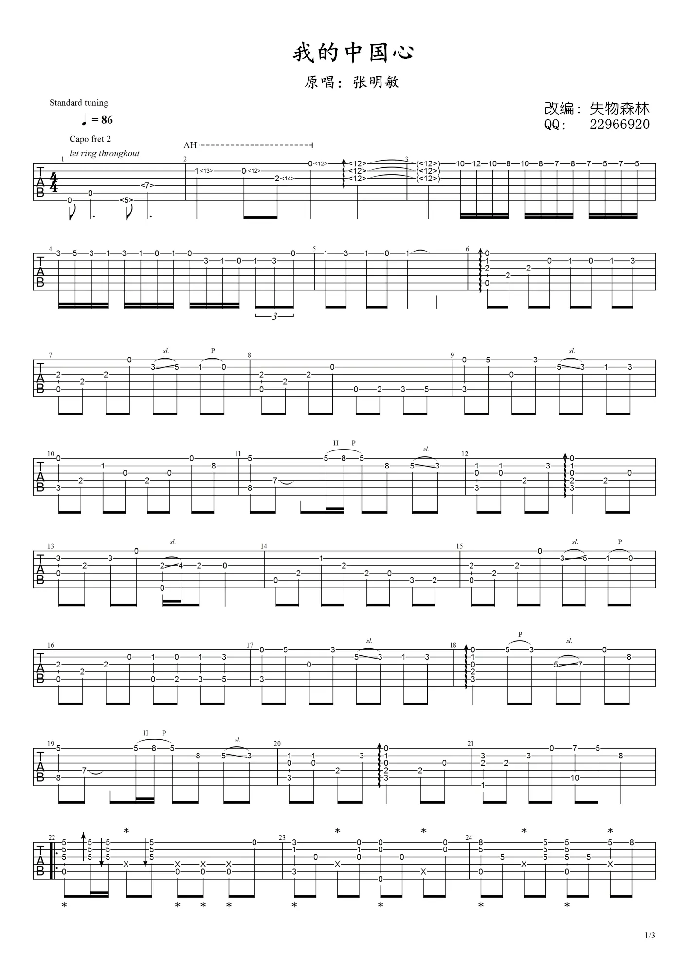 《我的中国心》+《万里长城永不倒》指弹谱,张明敏和叶振棠演唱的两首经典歌曲,《我的中国心》由黄霑作词、王福龄作曲,收录于1983年发行的专辑。《万里长城永不倒》由卢国沾作词、黎小田作曲,是电视剧《霍元甲》的主题曲。由失物森林编配出品。