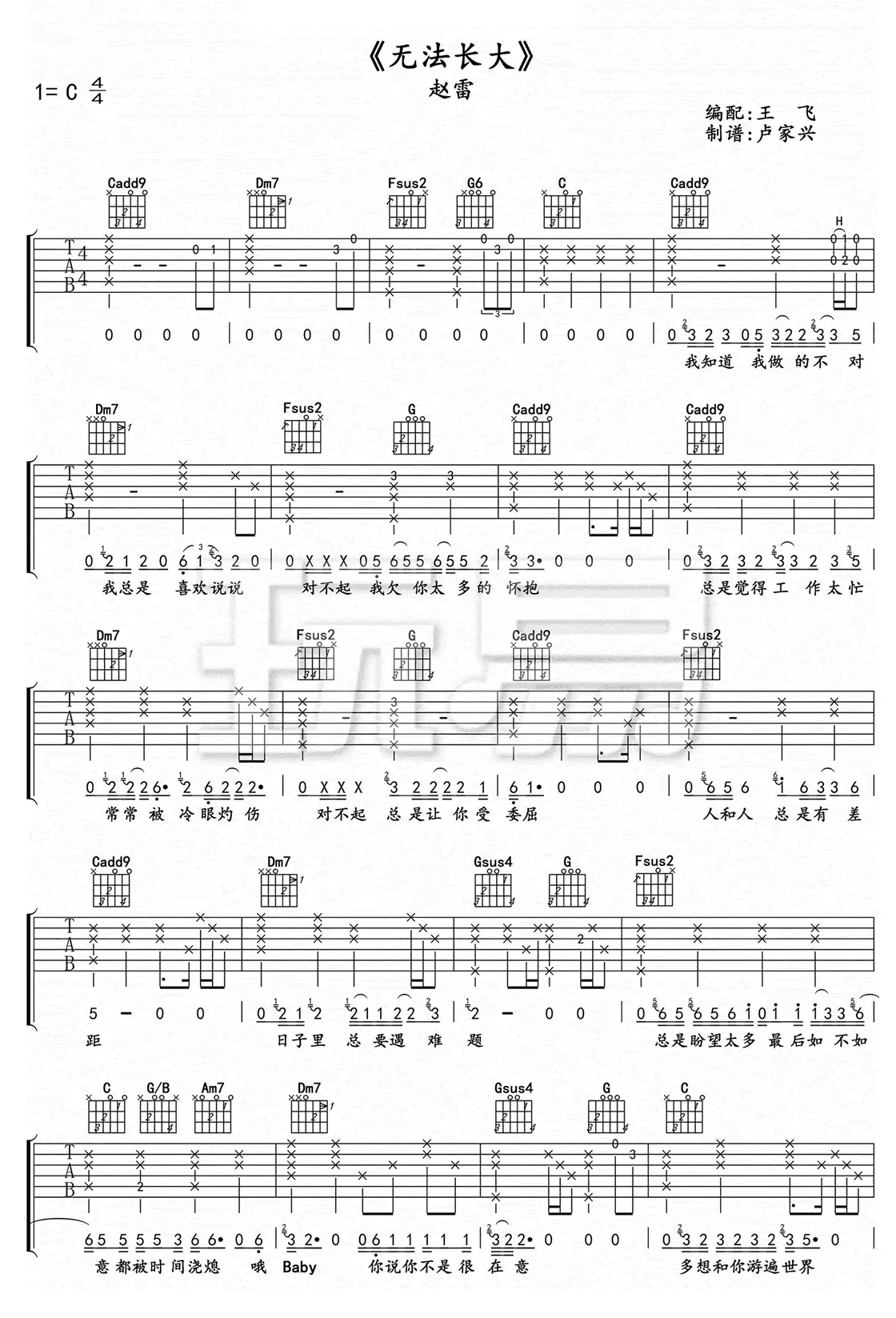 《无法长大》吉他谱_赵雷_C调_高清弹唱谱_图片谱_六线谱