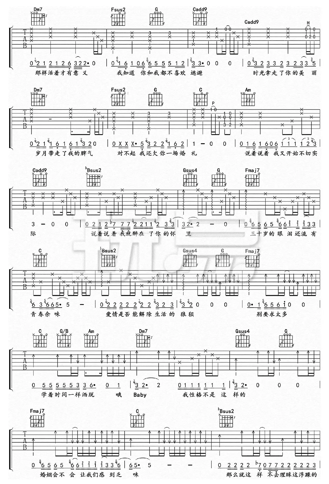 死性不改吉他谱_陈柯霓_G调弹唱谱_六线图片谱
