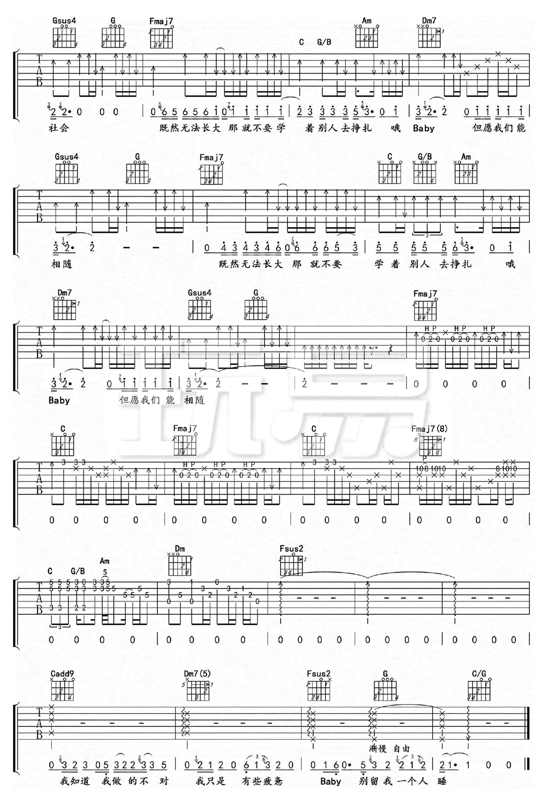 《无法长大》吉他谱,赵雷作词、作曲及演唱的一首民谣歌曲,2016年发行,收录于专辑《无法长大》中。吉他谱选用C调指法编配,由王飞老师编配出品。