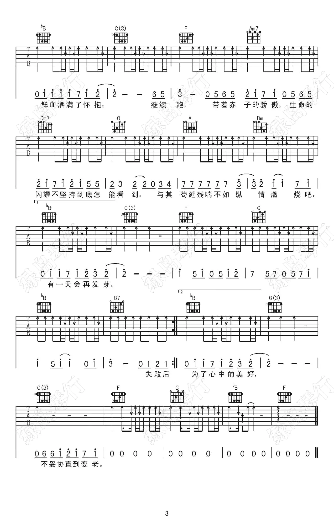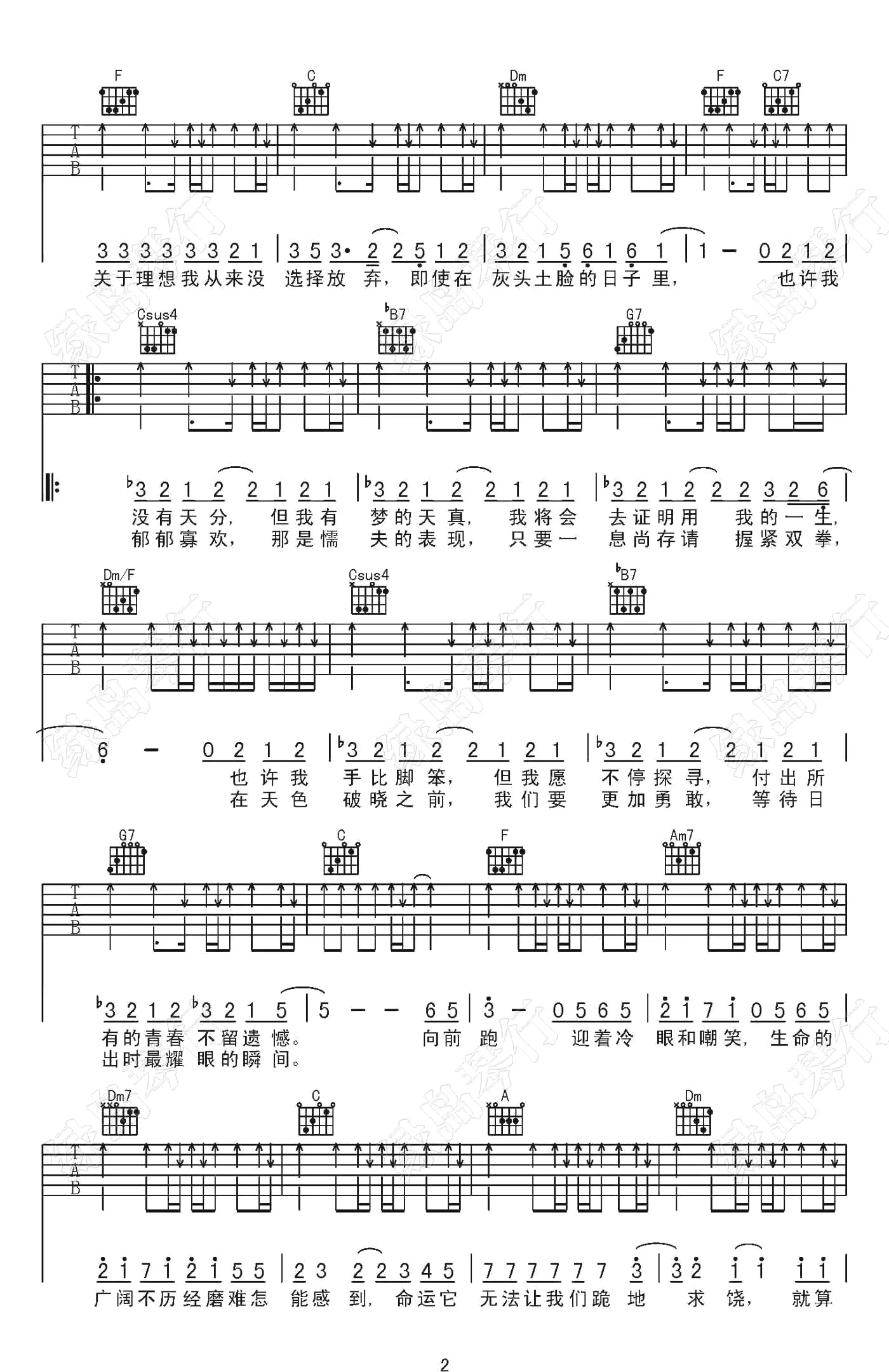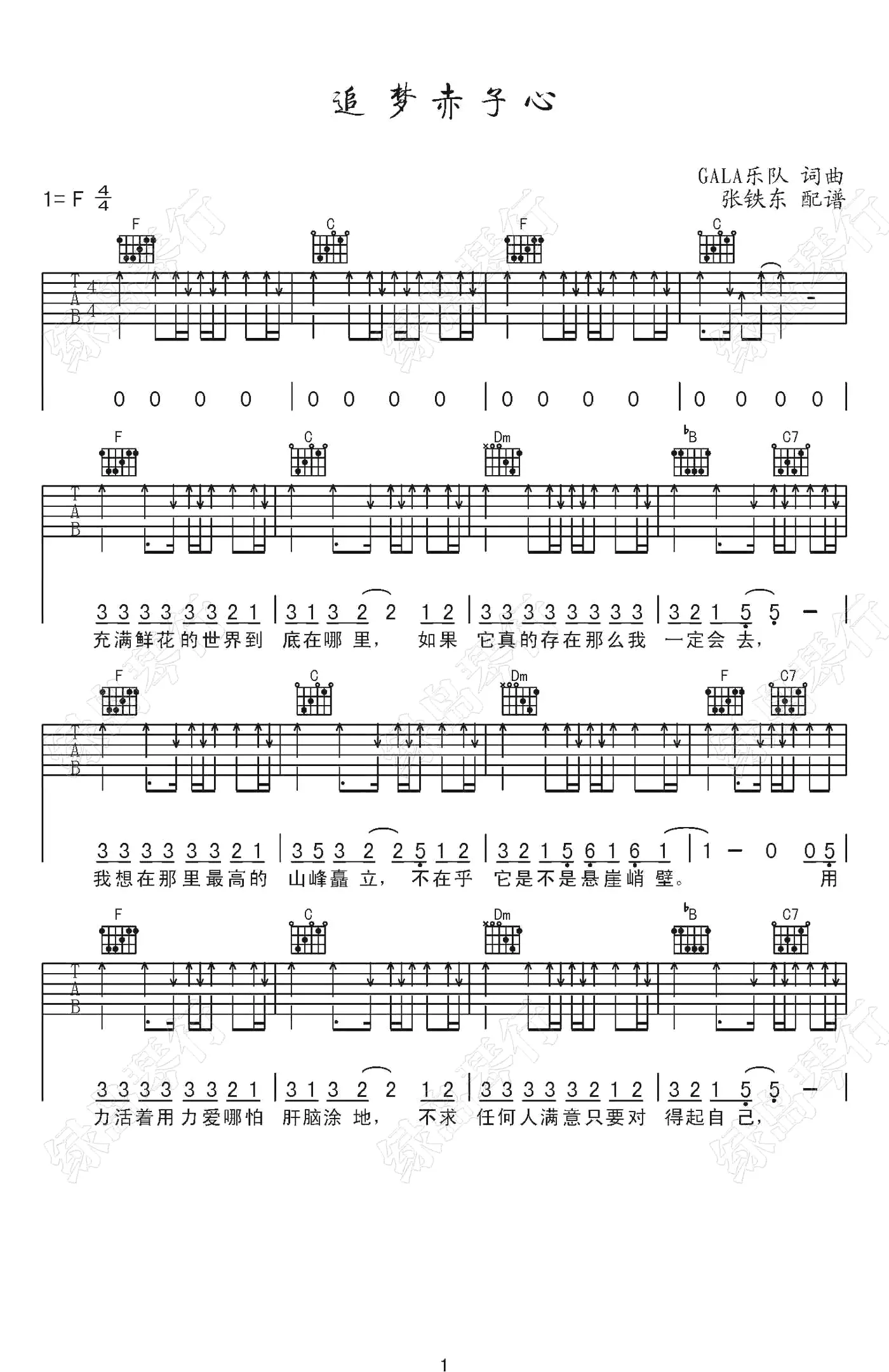 追梦赤子心吉他谱,GALA乐队原唱,2013快乐男声全国10强翻唱,苏朵作词作曲,收录于2011年发行的专辑《追梦痴子心》中,改编自2013快乐男声版本。 共3张图片谱。