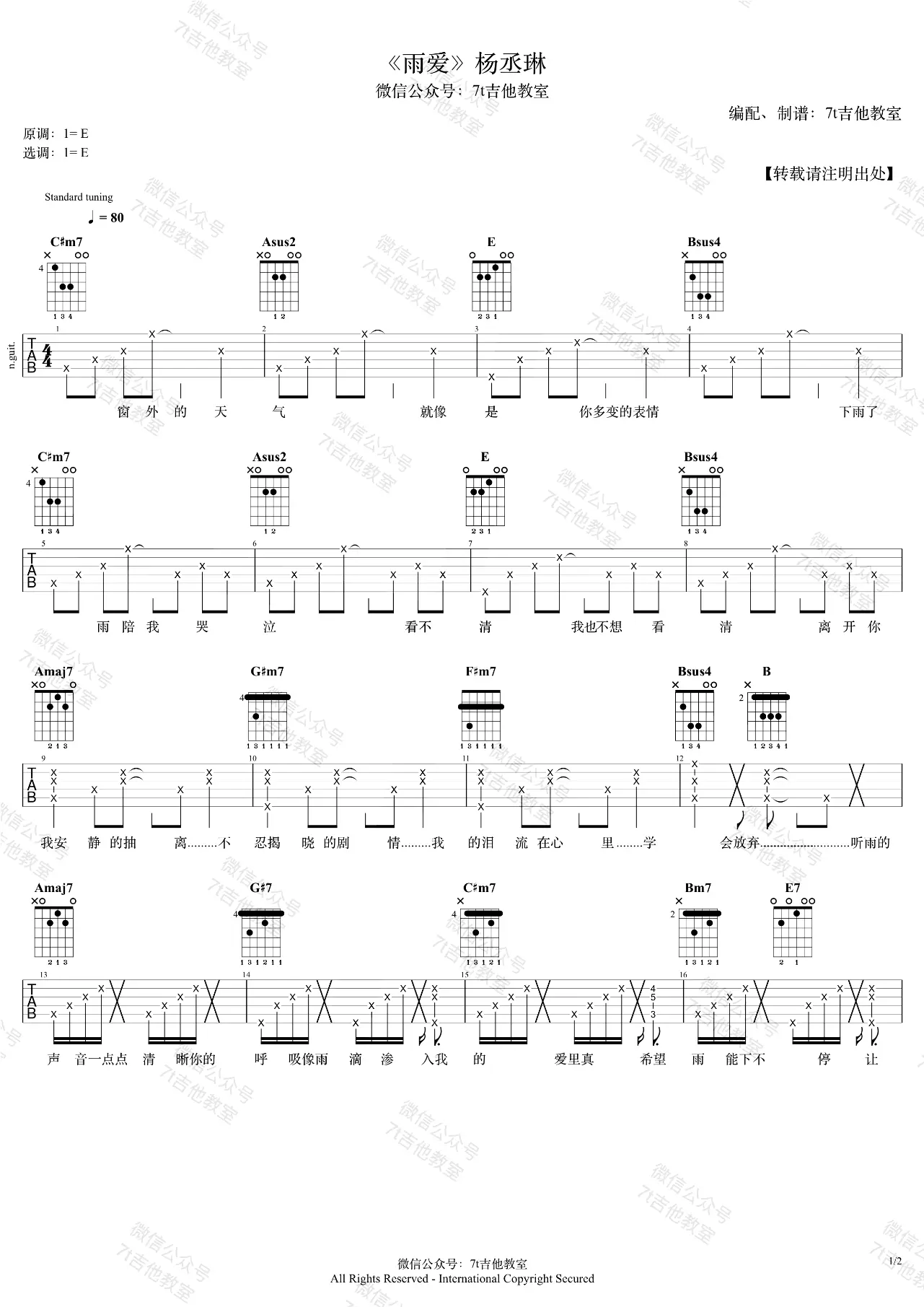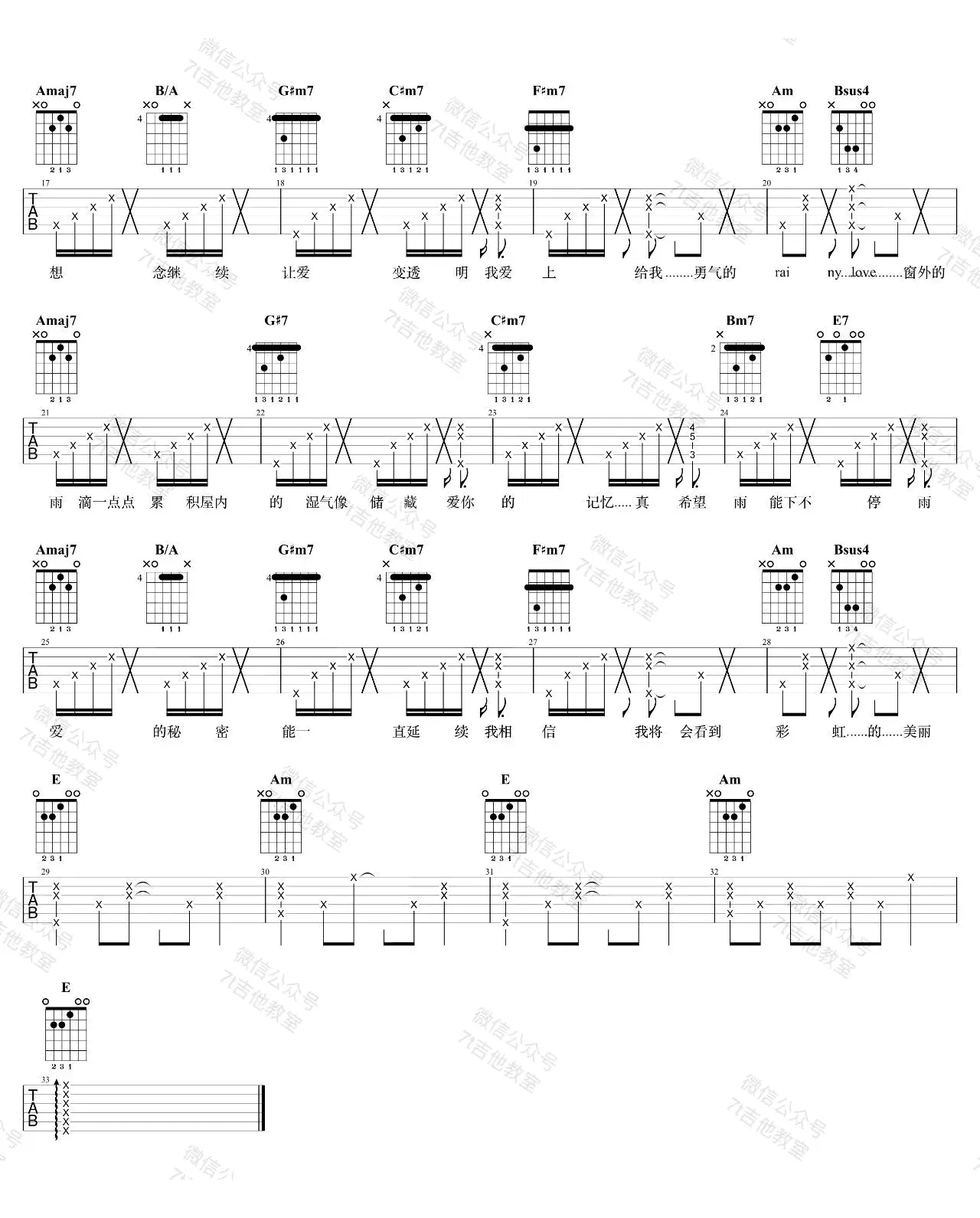 雨爱吉他谱_杨丞琳_E调_女生弹唱谱_图片谱