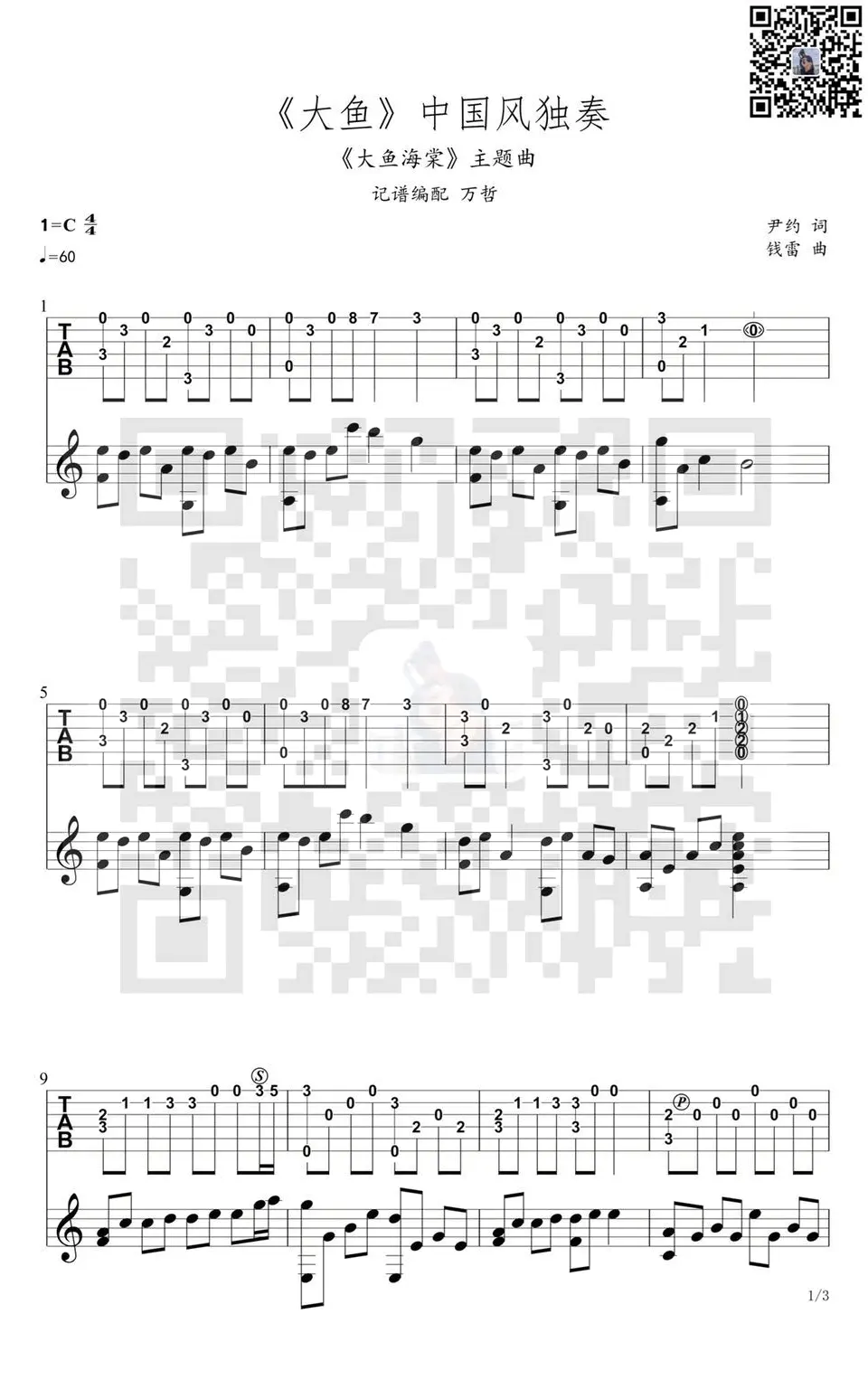 《大鱼》指弹谱_周深_《大鱼海棠》主题曲_中国风独奏谱_图片谱