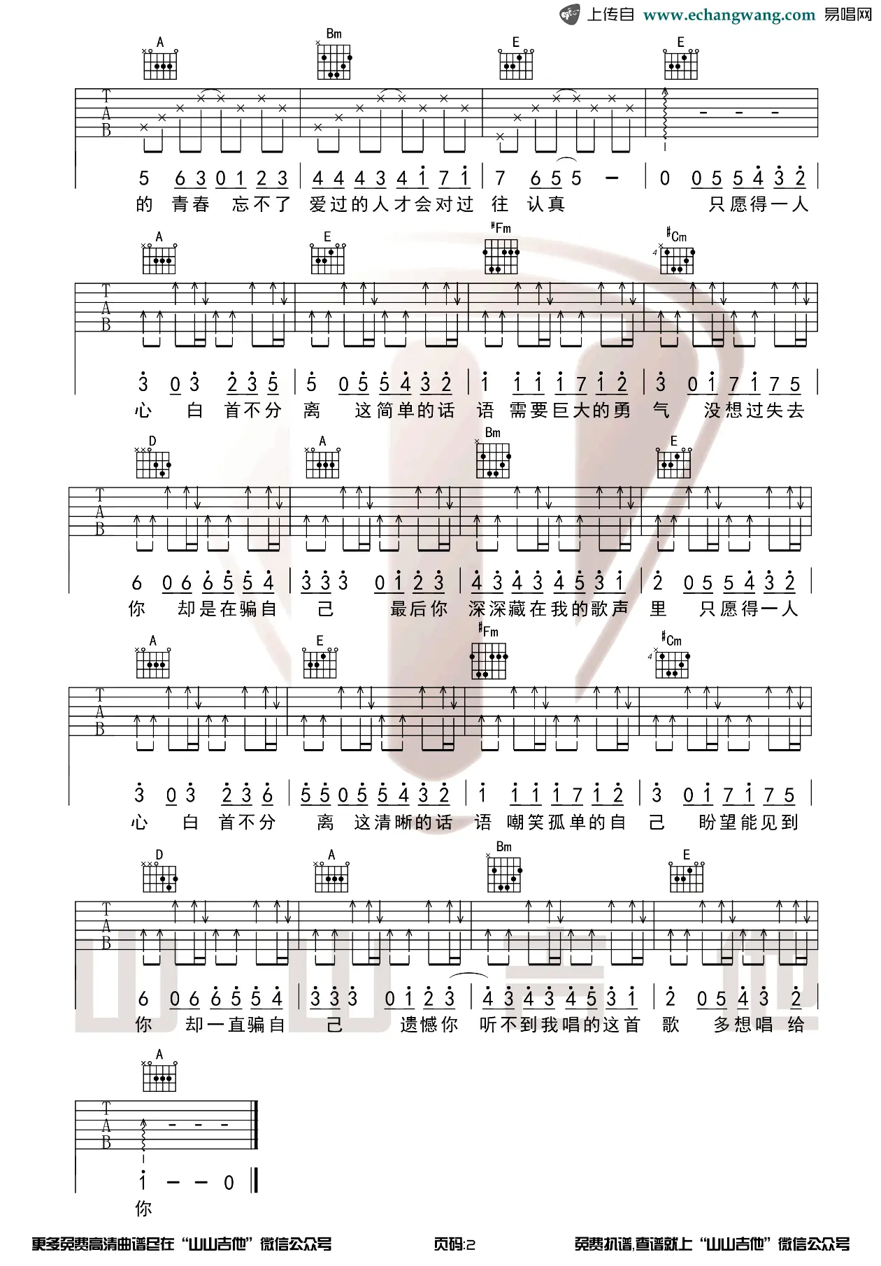 愿得一人心吉他谱_李行亮_A调_高清弹唱谱_图片谱