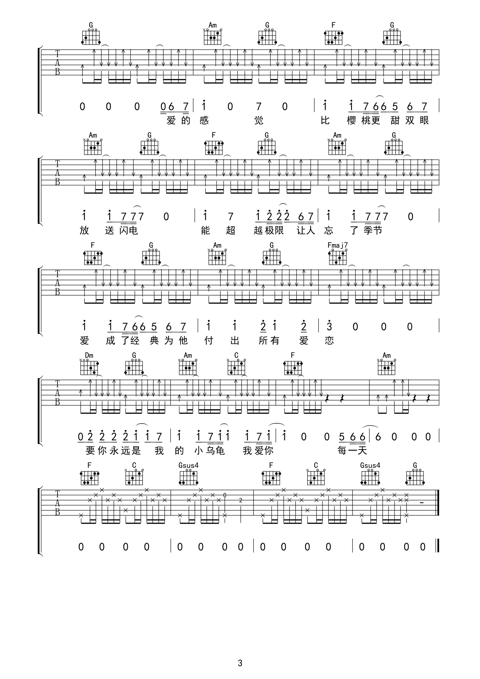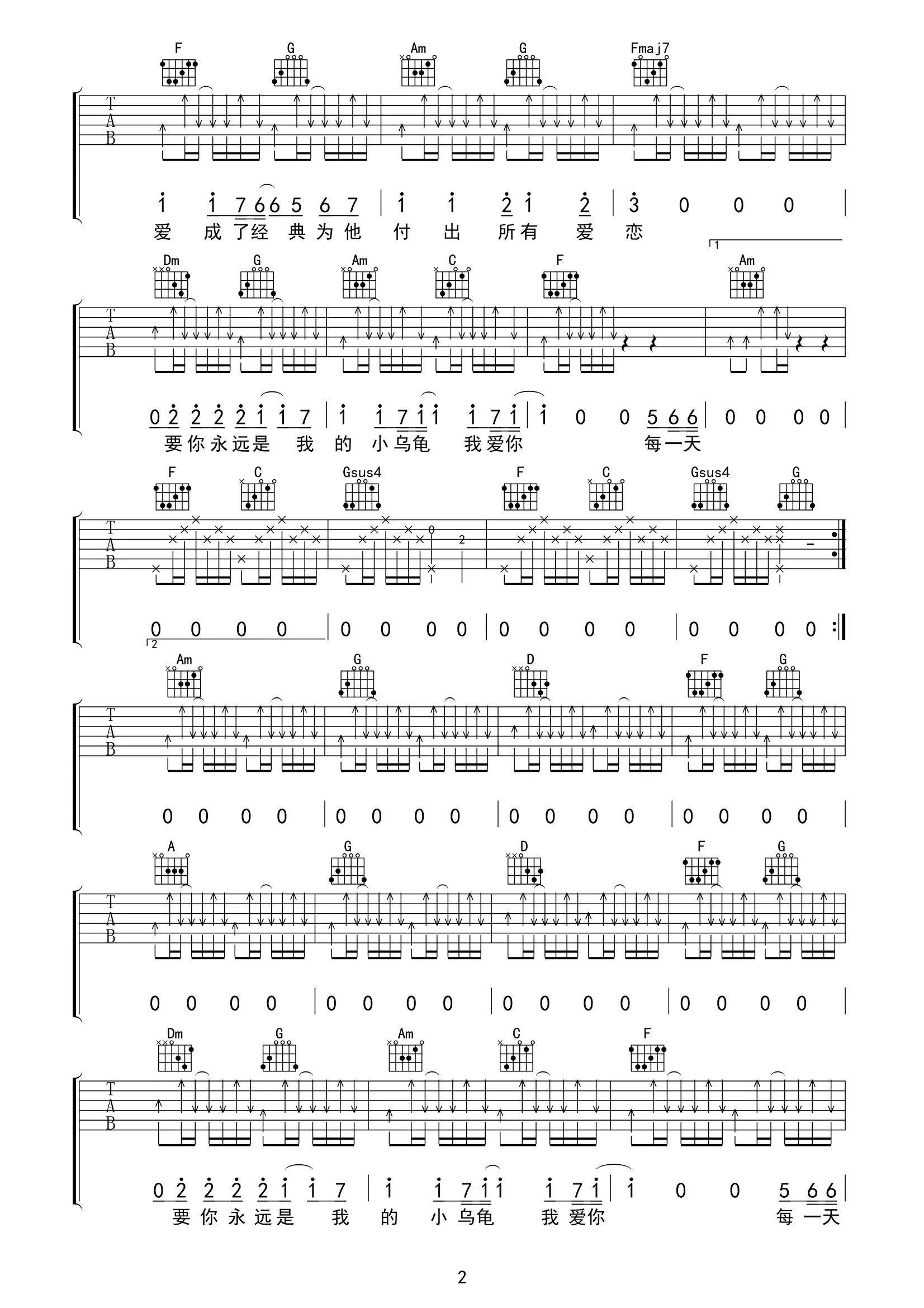 《小乌龟》吉他谱_张栋梁_C调指法_原版编配_高清图片谱