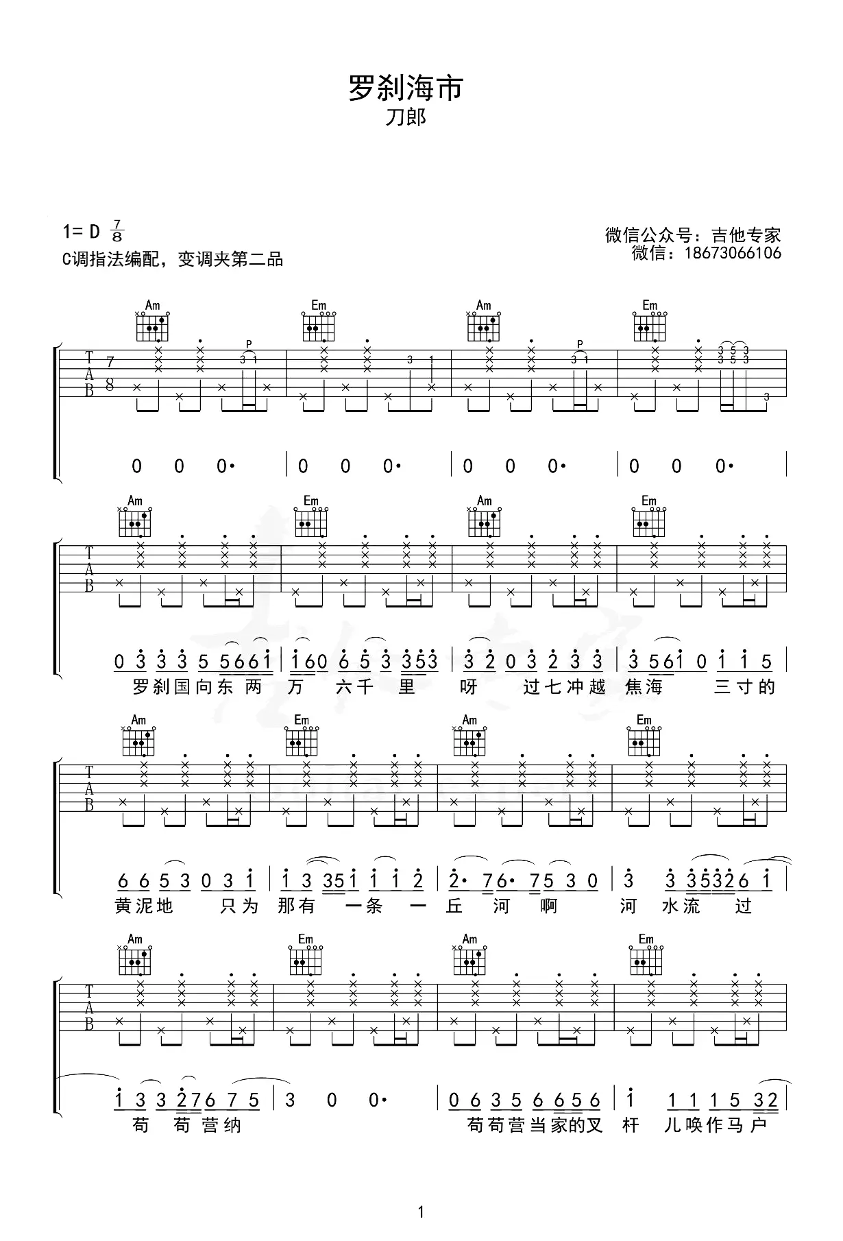 《罗刹海市》吉他谱,刀郎作词作曲及演唱,2023年发行,收录在专辑《山歌寥哉》中。歌曲原调D,吉他谱选用C调指法编配,capo夹2品为原调,共4张图片谱,由吉他专家编配出品。