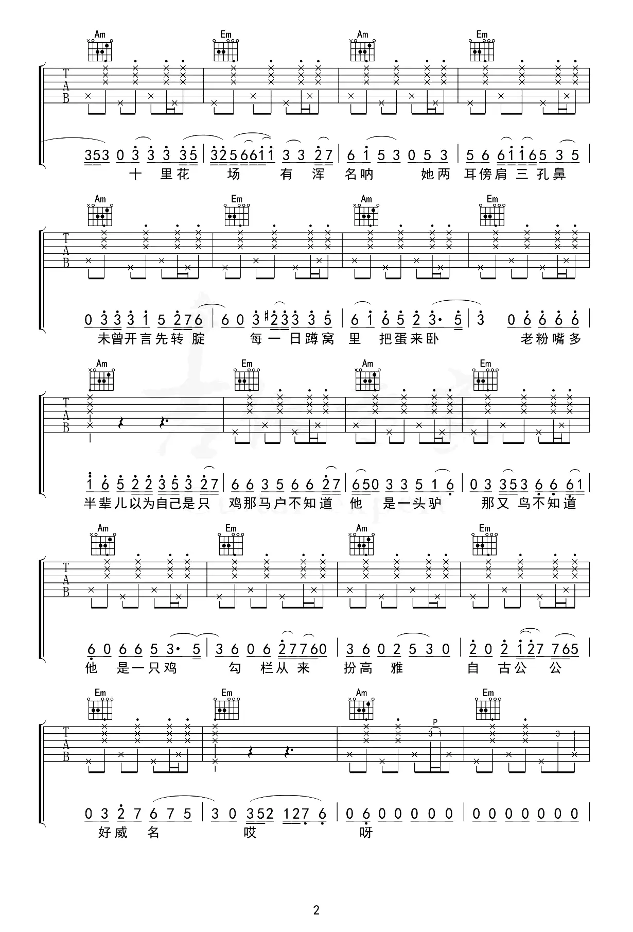 《小乌龟》吉他谱_张栋梁_C调指法_原版编配_高清图片谱