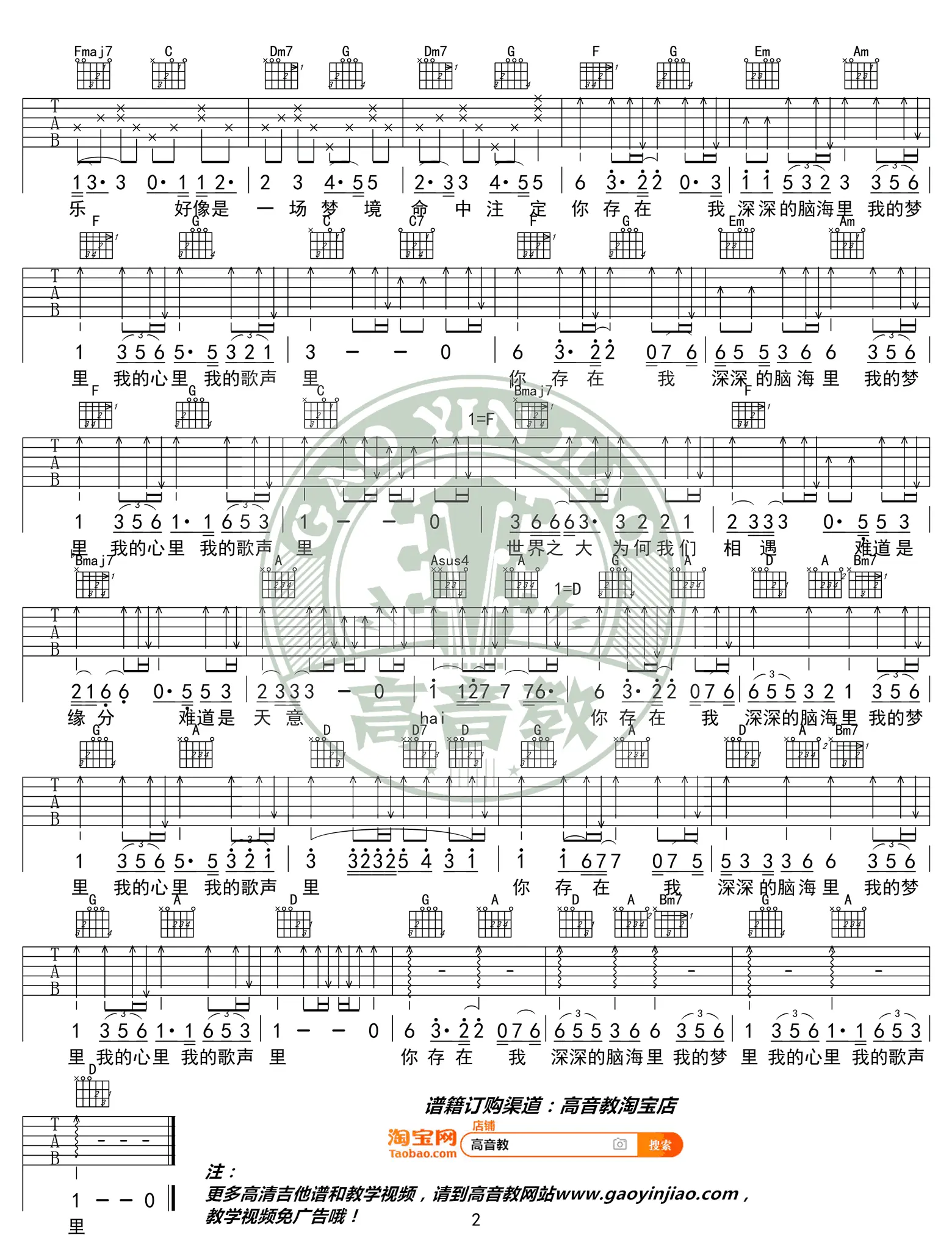 我的歌声里吉他谱_曲婉婷_弹唱谱_高清图片谱_精华版