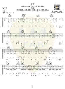 任然《飞鸟和蝉》吉他谱,歌曲由耕耕作词,Kent王健作曲,侯江浩编曲,任然演唱,原调降B调,演唱时变调夹夹3品,共3张图片谱,由凡凡吉他编配制谱出品。
