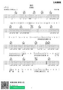 旅行吉他谱_许巍_弹唱六线谱_D调_高清图片谱