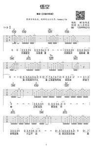 《悟空》吉他谱_戴荃_契合大圣归来_完整版六线谱